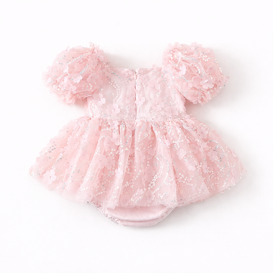 Baby Girls Clothing- Margarett sequin appliqué Romper- Special Price